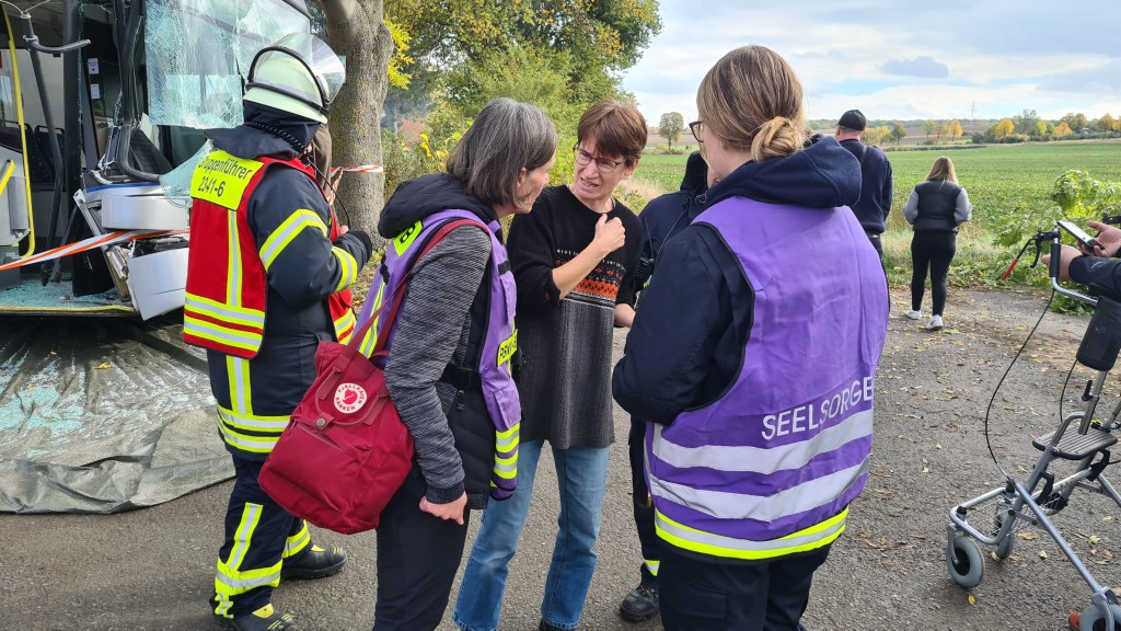 Für den ersteintreffenden Notfallseelsorger, der dann die Aufgabe des Leitenden Notfallseelsorgers übernommen hatte, galt es dann, sich einen Überblick zu verschaffen und 15 weitere Kolleginnen und Kollegen zu koordinieren und in Absprache mit der Einsatzleitung einzusetzen.